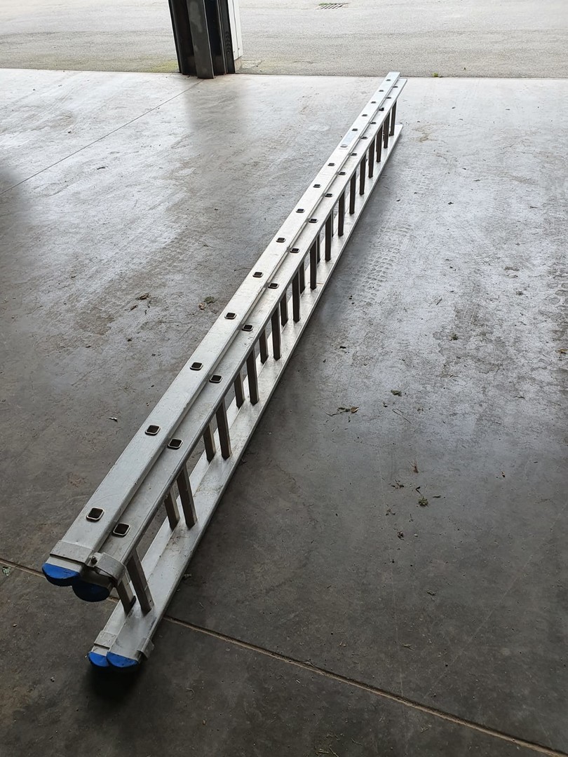 Die Anlegeleiter ist zweiteilig und auf ca.7,7 Meter ausziehbar.